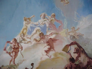 The Neue Residenz was a lot like the Schloss- same type of rooms, paintings, furnishings, etc. However.... they were all a little grander. Apparently the people who lived in the Neue Residenz had wanted the oh-so-wonderful title of "people with the best chambers for the Emperor to stay in when he visits." Unfortunately... the Emperor never did come to visit.